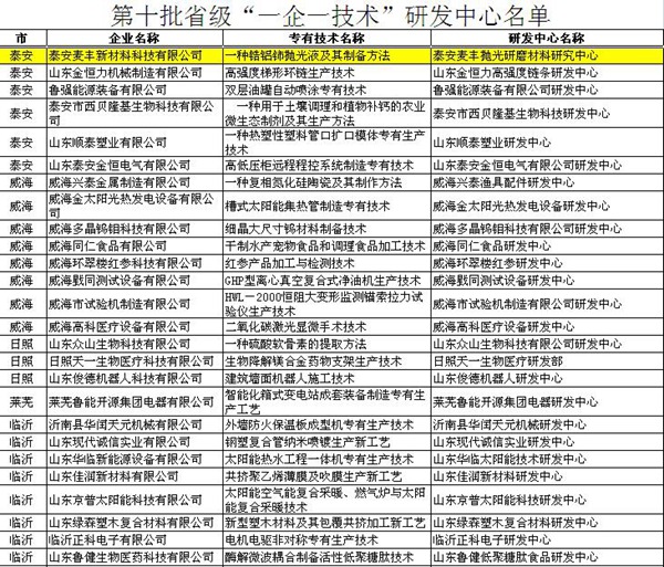 近日,《山東省中小企業(yè)局文件(魯中小企局字[2015]64號)》公布了省級第十批 “一企一技術(shù)”研發(fā)中心和第八批“一企一技術(shù)”創(chuàng)新企業(yè)名單,泰安麥豐新材料科技有限公司通過市局推薦、省局初審和專家委員會(huì)嚴(yán)格評審,成功獲評省級“一企一技術(shù)”研發(fā)中心。